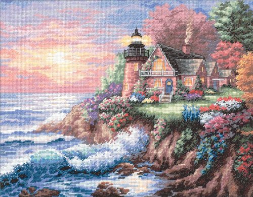 - This eye-catching seascape is worked on 14-count ivory Aida with an artistic mix of Cross and Half Cross Stitch Kit contains cotton thread,
